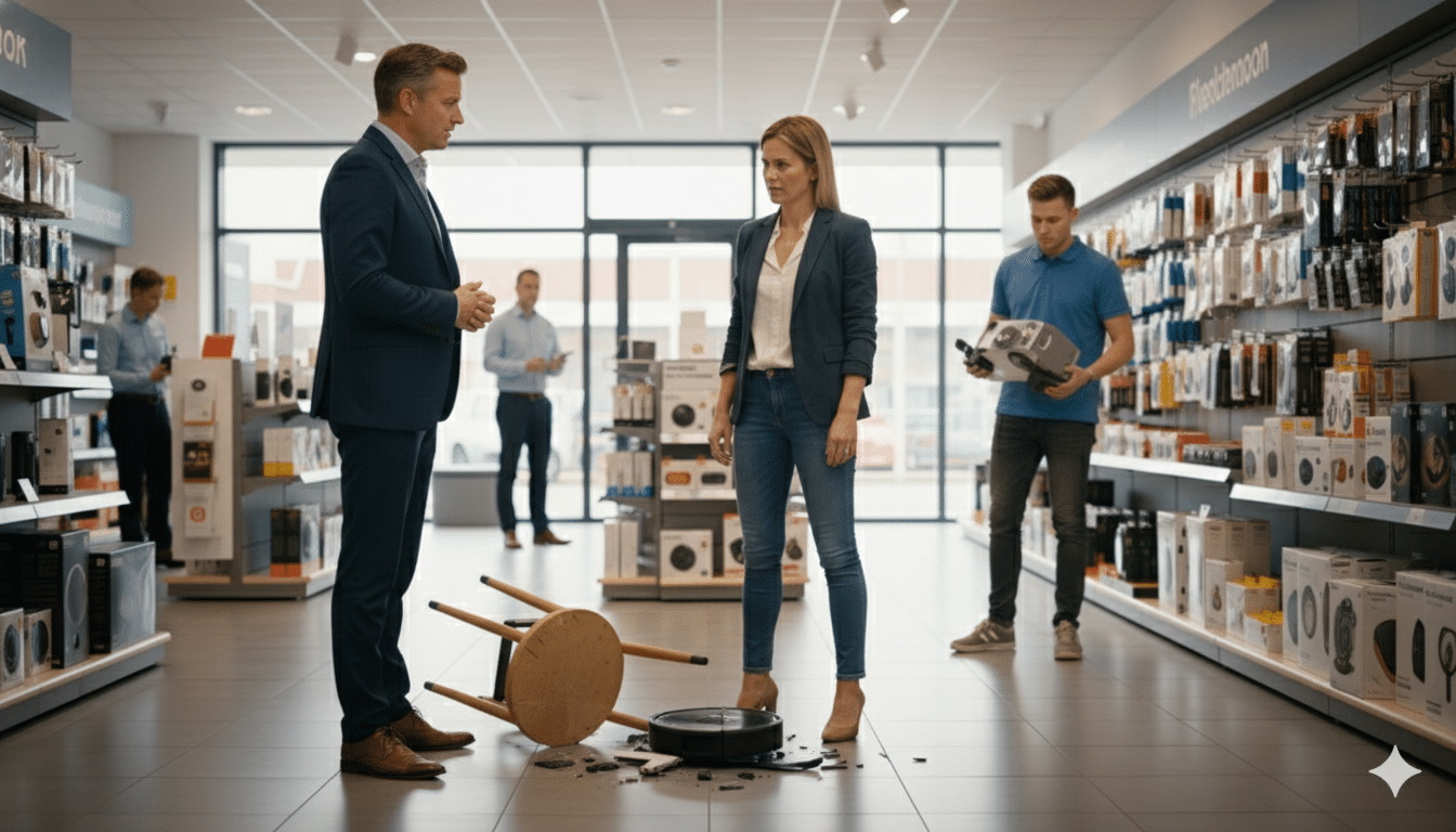 -Een klant die struikelt over je oplaadkabel en daarbij zijn pols breekt.