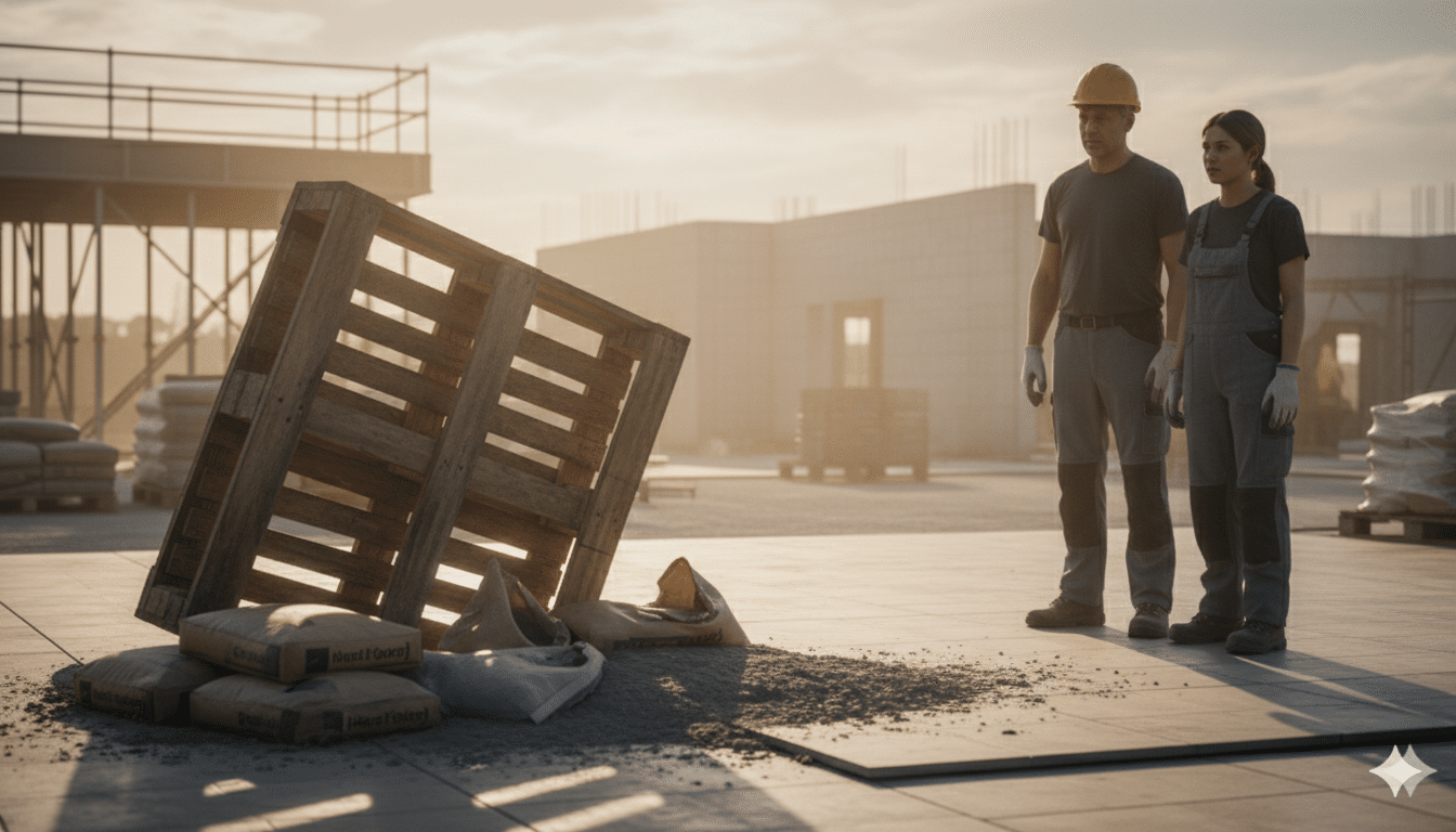 -Steigermateriaal dat omvalt en op een geparkeerde auto terechtkomt.